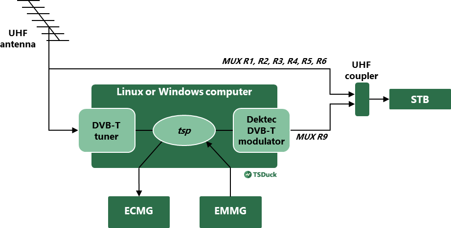 This example is fully described in the TSDuck User’s Guide with all details and corresponding commands.
