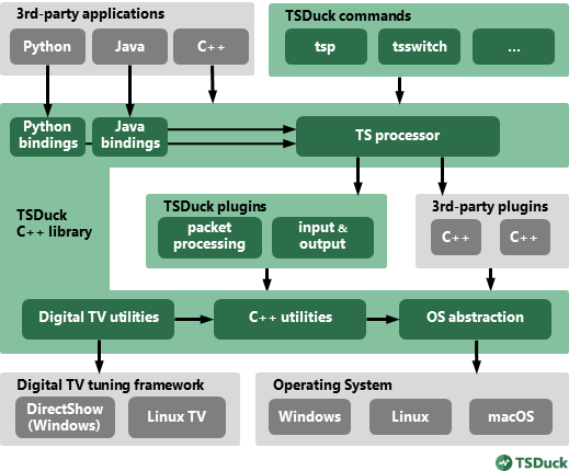 TSDuck can also be used as a MPEG transport stream C++ library for your own applications.